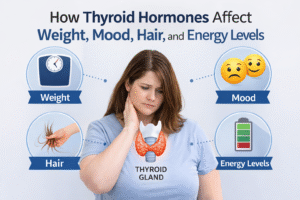 Many young people come with symptoms like weight gain, hair fall, tiredness, mood changes, and irregular periods. They often think this is happening because of work pressure or lack of sleep. But sometimes, the real reason is a thyroid problem.